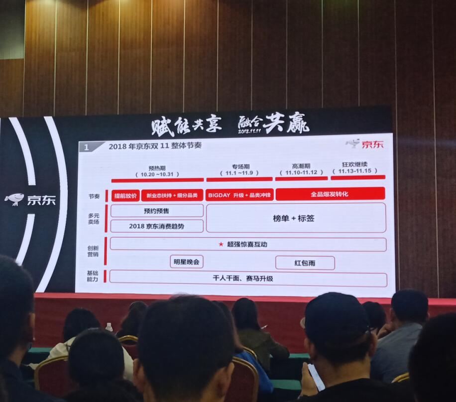 927日參加京東雙十一商家大會,學(xué)習(xí)了解京東集團(tuán)為雙十一做的預(yù)熱準(zhǔn)備,包括大數(shù)據(jù)分析、站內(nèi)站外精準(zhǔn)廣告投放引流、物流支持等多方位保障。