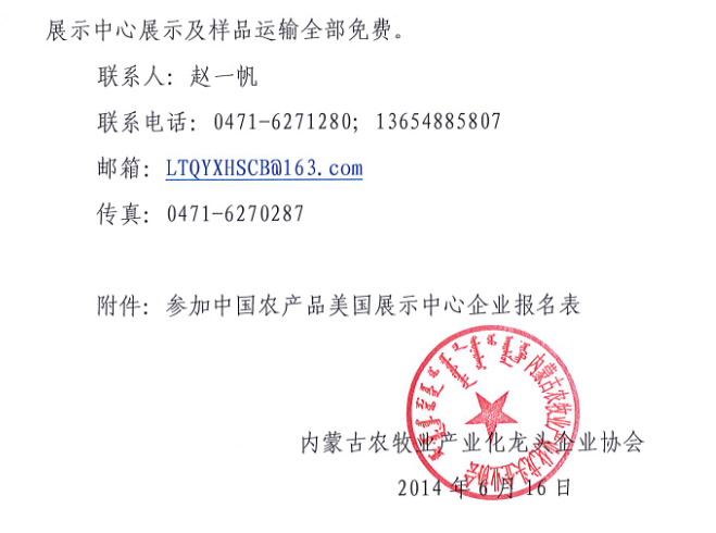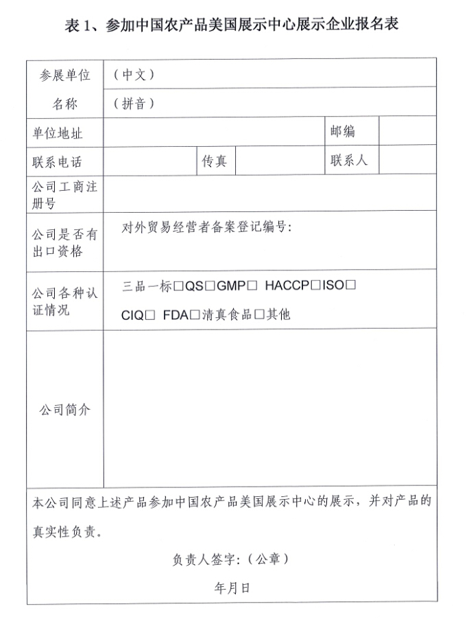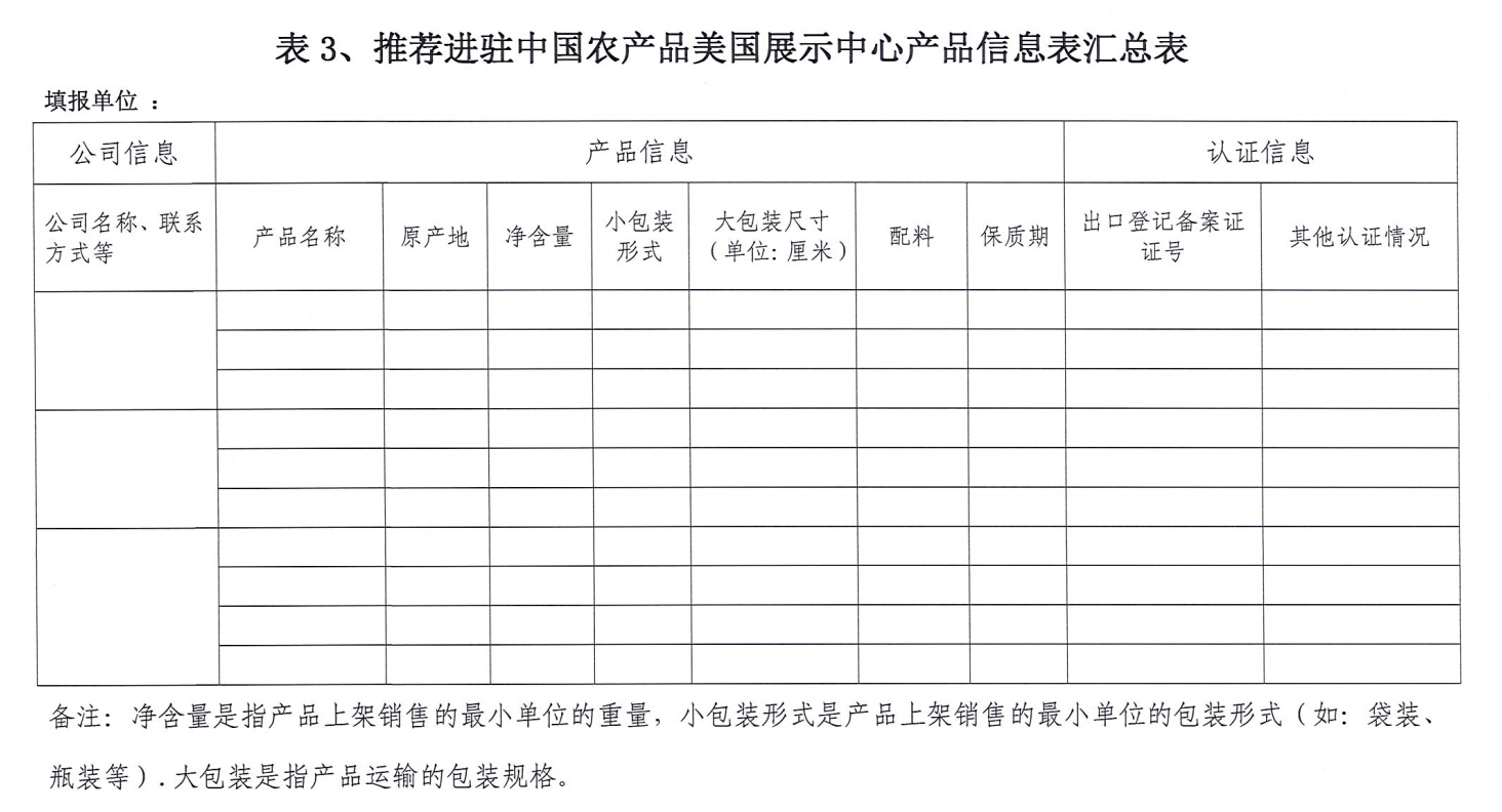 關(guān)于中國(guó)農(nóng)產(chǎn)品美國(guó)展示中心展品征集的通知