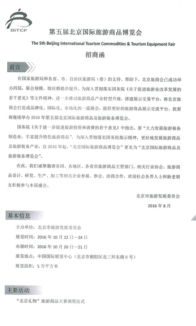 關(guān)于邀請(qǐng)參加第五屆北京國(guó)際旅游商品博覽會(huì)的通知